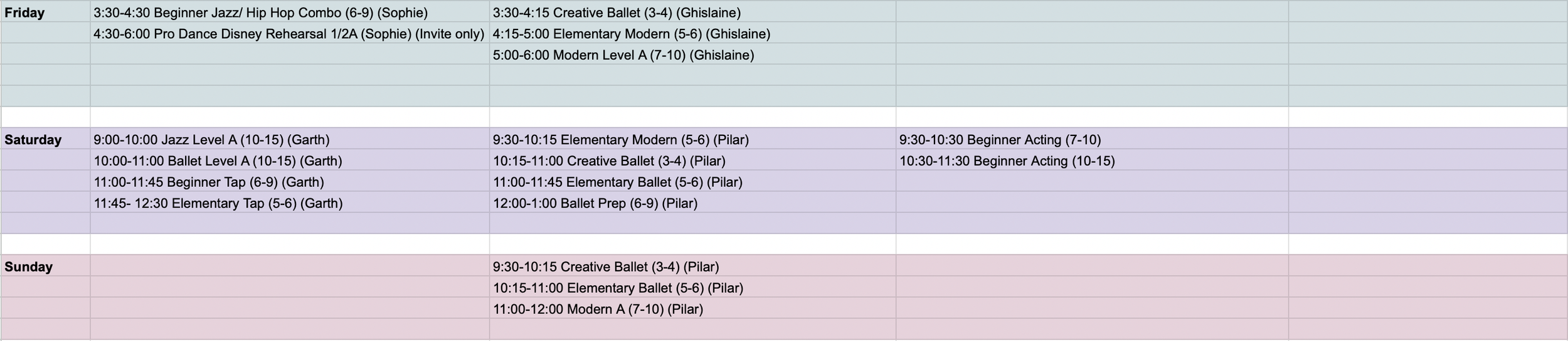 The teachers at LHG Creative do after school pick up and start teaching between 3:15 and 4pm. Children ages 3-5 can be registered for pick up for any class that starts by 4pm to ensure we have someone watching them. Children over the age of 5 who are able to sit independently in the lobby without direct teacher supervision may be picked up for classes that start at any time!